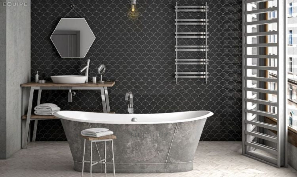 Scale Fan Black Matte 4 X 5 Ceramic Tile
